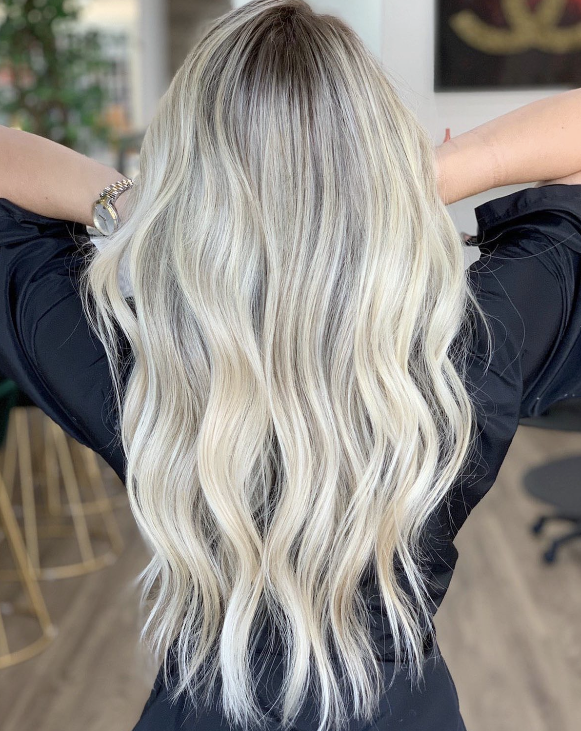 We then lighten our hair by hand in our small family-developed lightening baths that can take up to 40 days per color; completely without bleaching. This allows us to achieve crisp light tones without any discoloration, dryness or hair breakage.